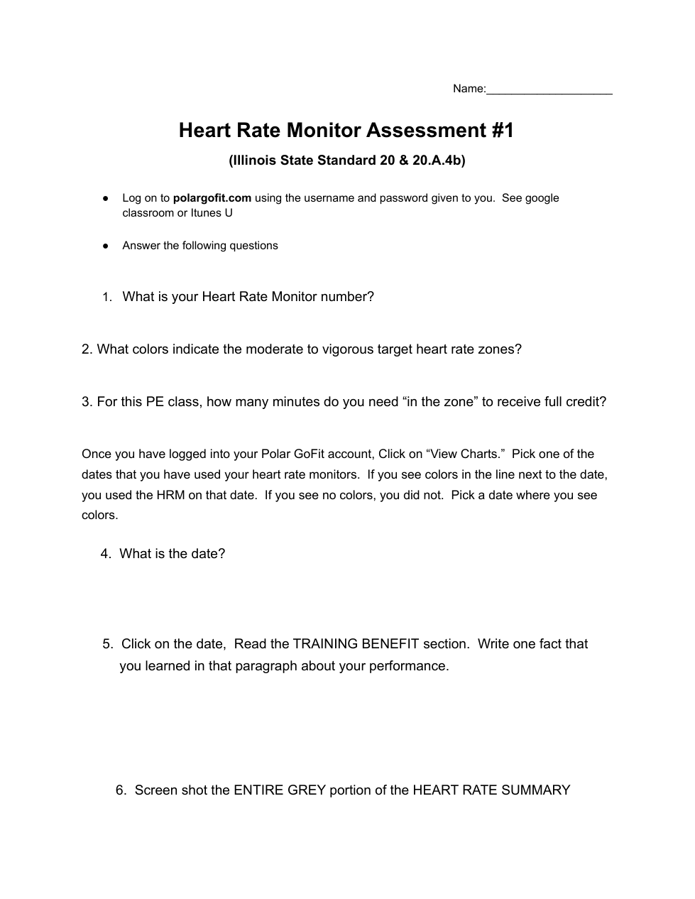 This is the first heart rate monitor assessment for Total Body Conditioning.