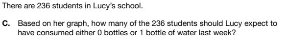 Out of 236 students, Lucy can expect _______ students to have consumed 0 bottles and _______ students to have consumed 1 bottle of water last week.