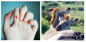Now look at the image of the baby zebra with its mother. How did the offspring inherit its