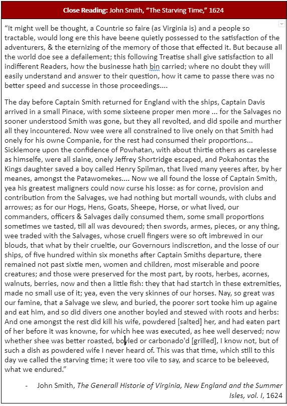 - Captain John Smith describes how "TEXT EVIDENCE" (Smith, 1624).