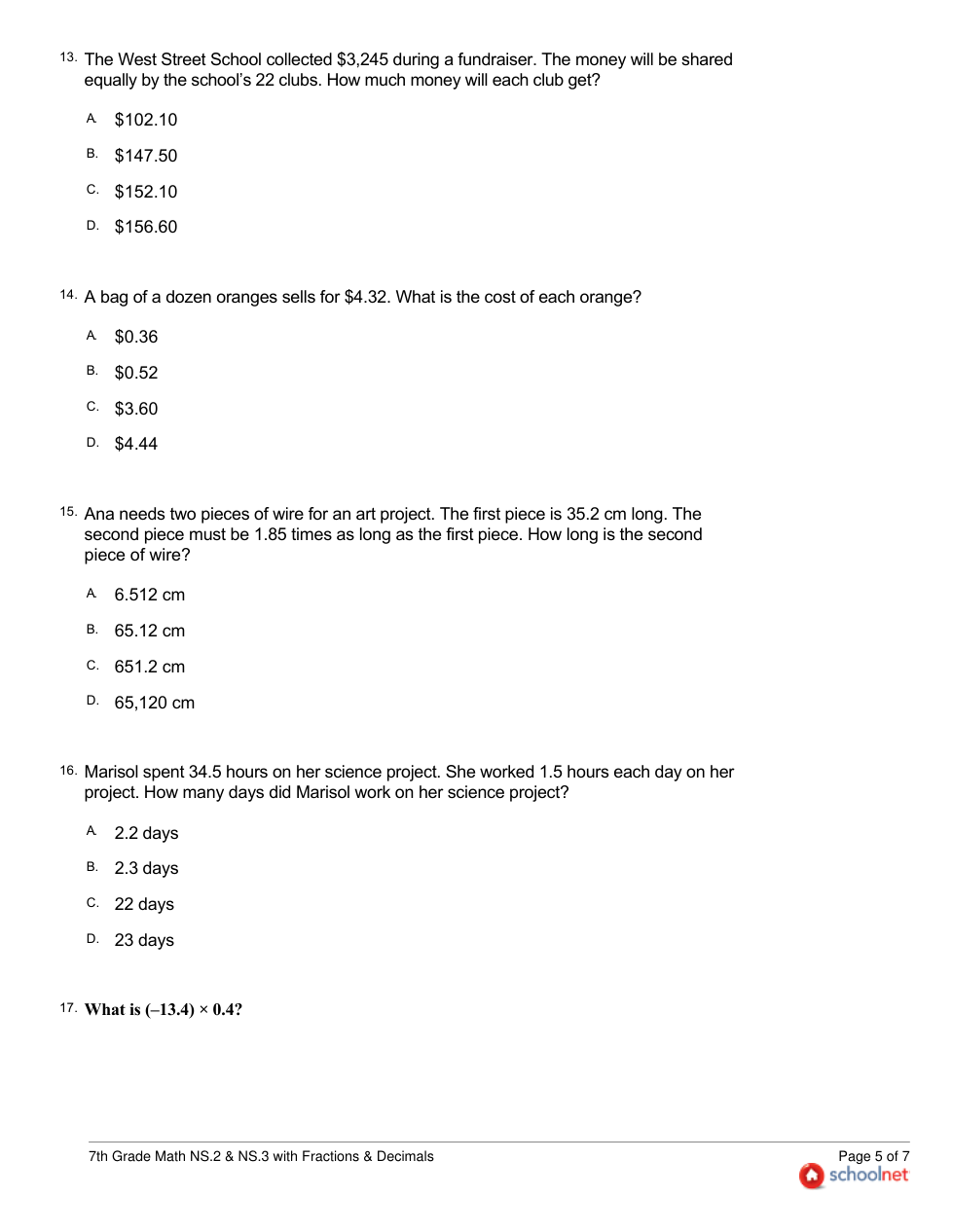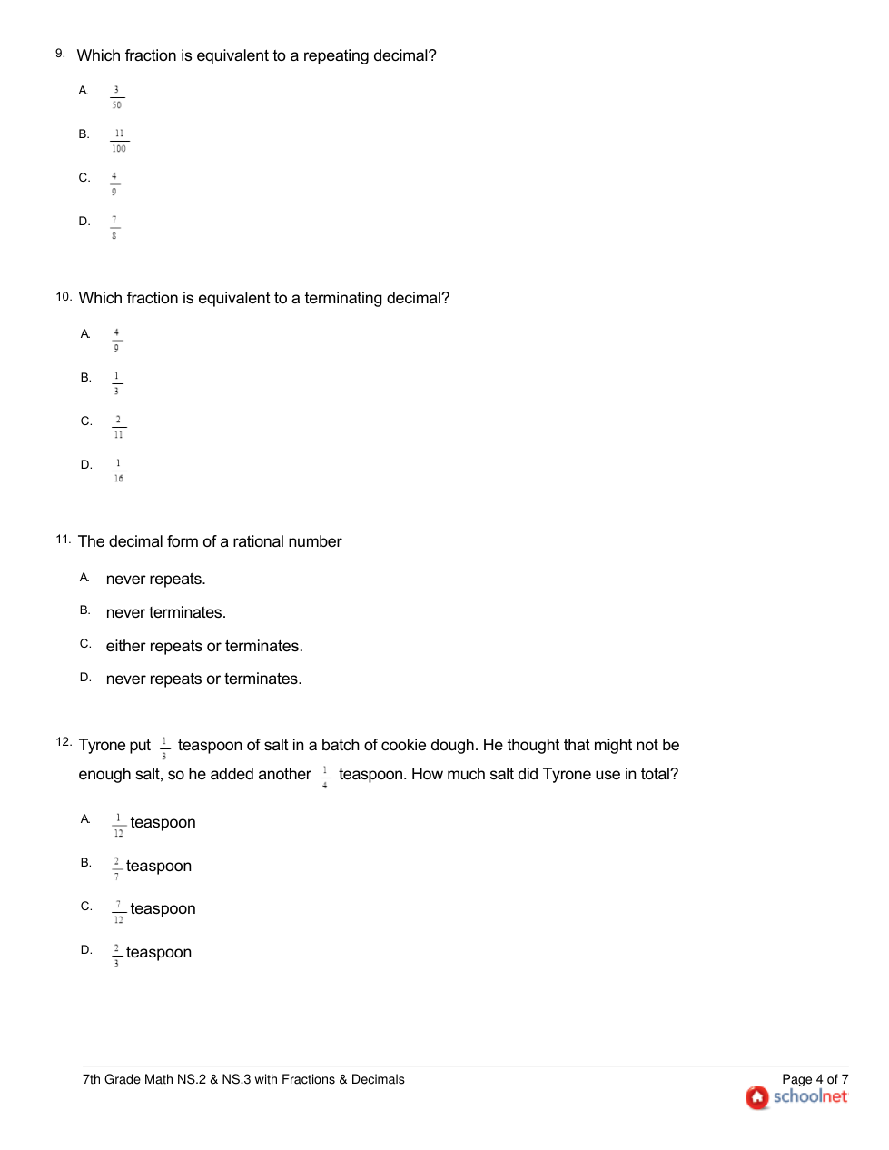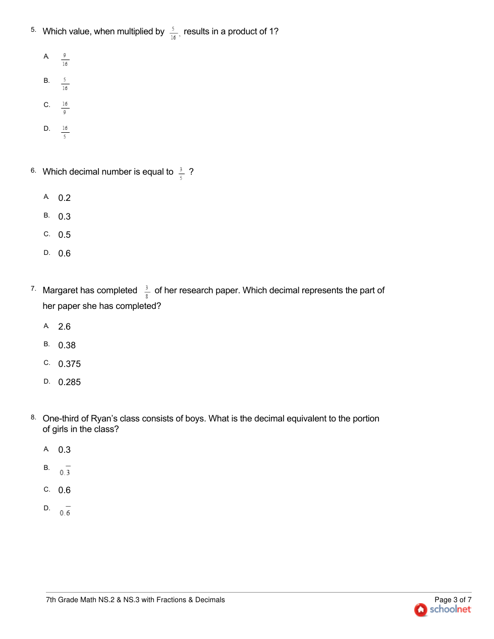 7th Grade NS2 & NS3 with Frac & Dec