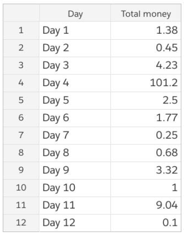 Use the table below to answer the following questions: