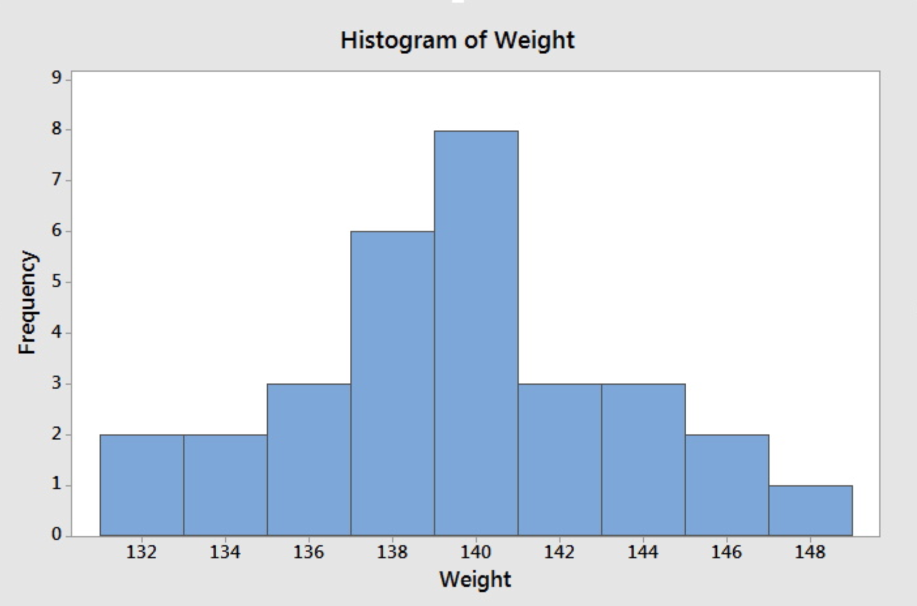 The histogram below shows the weights of members of a sports team.