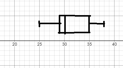 25, 28, 29, 29, 30, 34, 35, 35, 37, 38