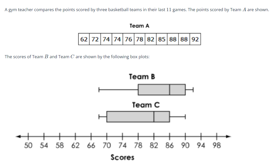 Select the box that compares the Median Score and the Interquartile Range.