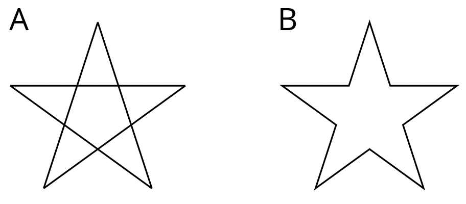 Here are two five-pointed stars. A student said, “Both figures A and B are polygons. They are both composed of line segments and are two-dimensional. Neither have curves.” Do you agree with the statement? Explain your reasoning.