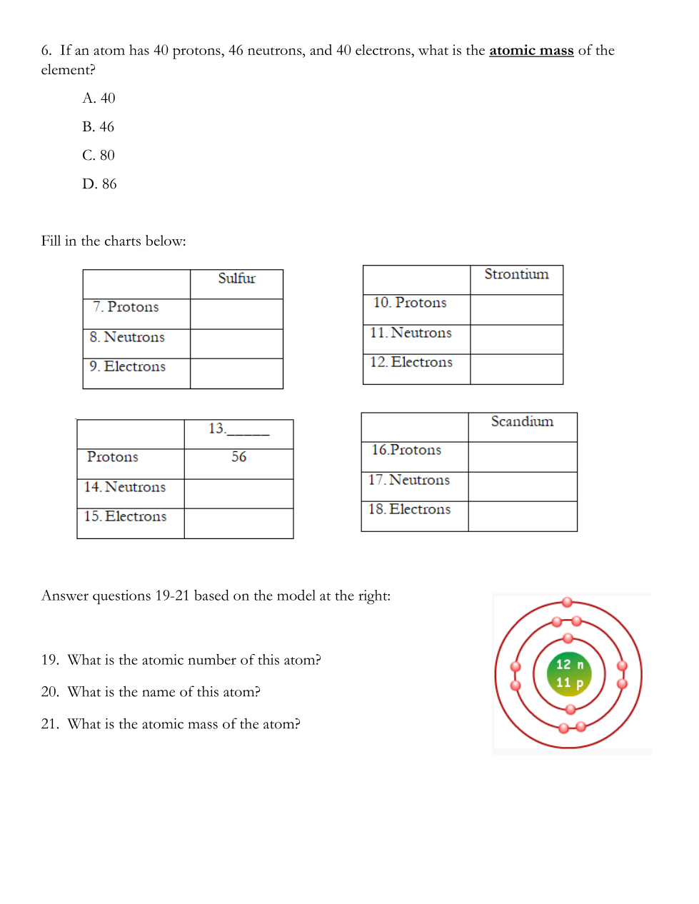 Using three different colors of playdough for protons, neutrons, and electrons, build a model of Sodium. Take a picture of your model below, making sure to label the colors for the protons, neutrons and electrons.