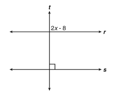 In the figure, parallel lines r and s are cut by line t. What is the value of x in this figure?