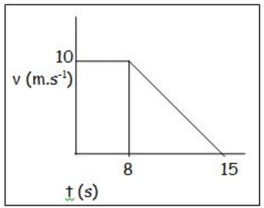 The velocity-time graph represents the movement of a train on a straight horizontal track. What is the average speed in m.s-1, of the object for the interval 0 s to 15 s?