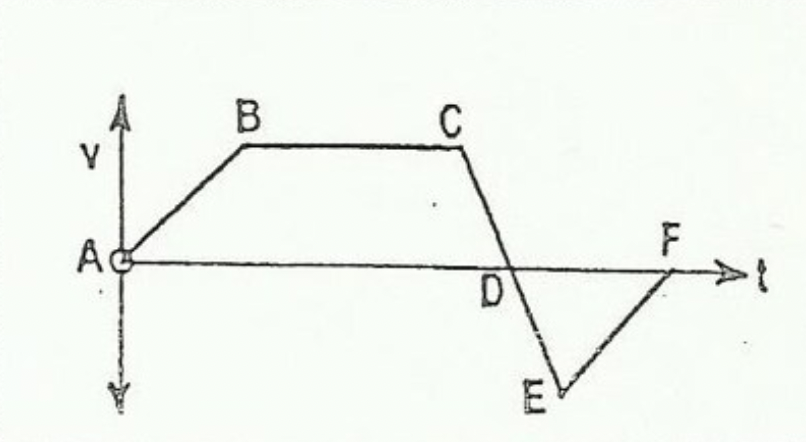 The velocity-time graph represents the motion of a motor car which begins to move in an easterly direction.