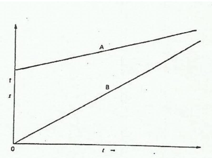 The motion of two objects, A and B, is shown in the displacement-time graph.
