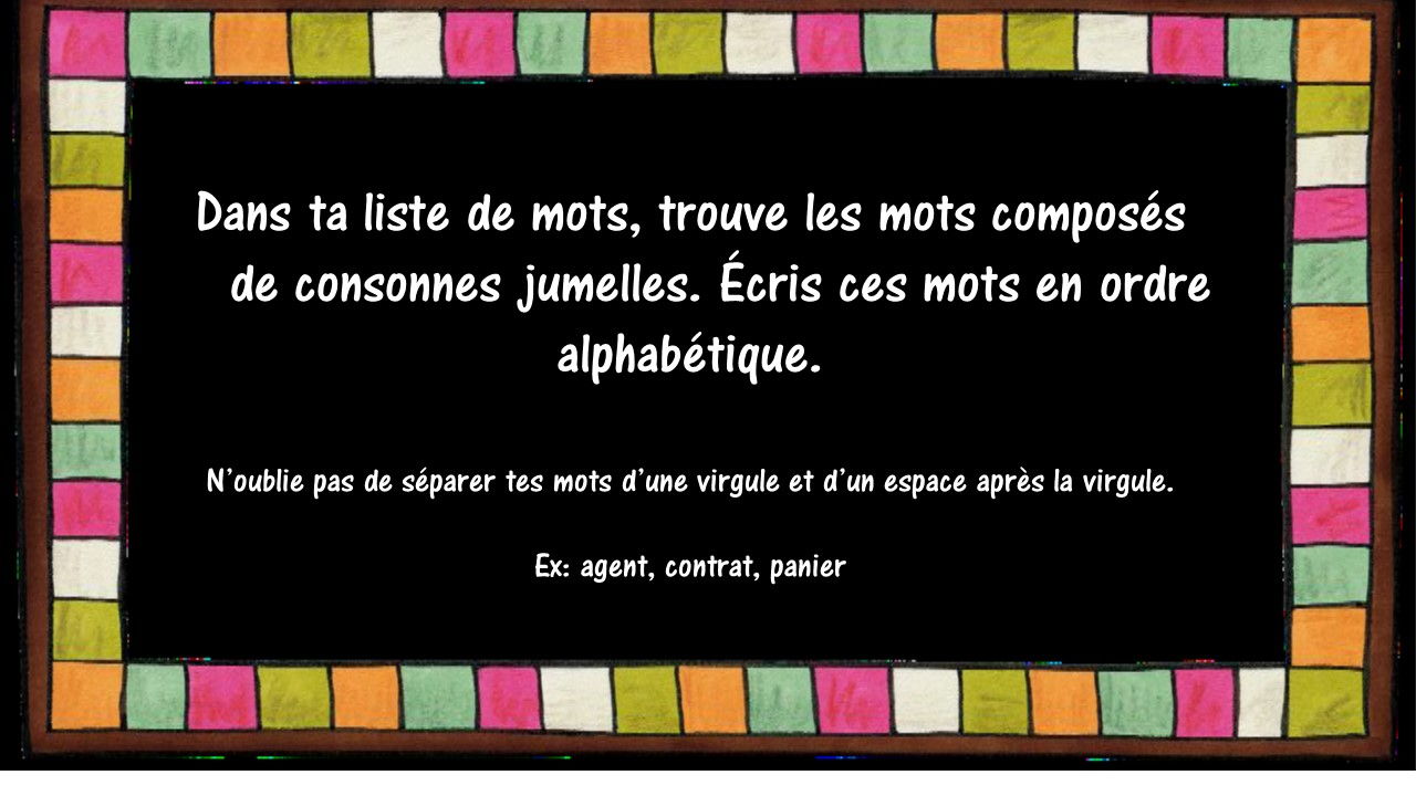 Ces mots sont: Attention, je n'ai pas mis de déterminants.