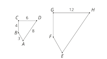 Quadrilateral ABCD is similar to quadrilateral EFGH. Select all of the true statements.
