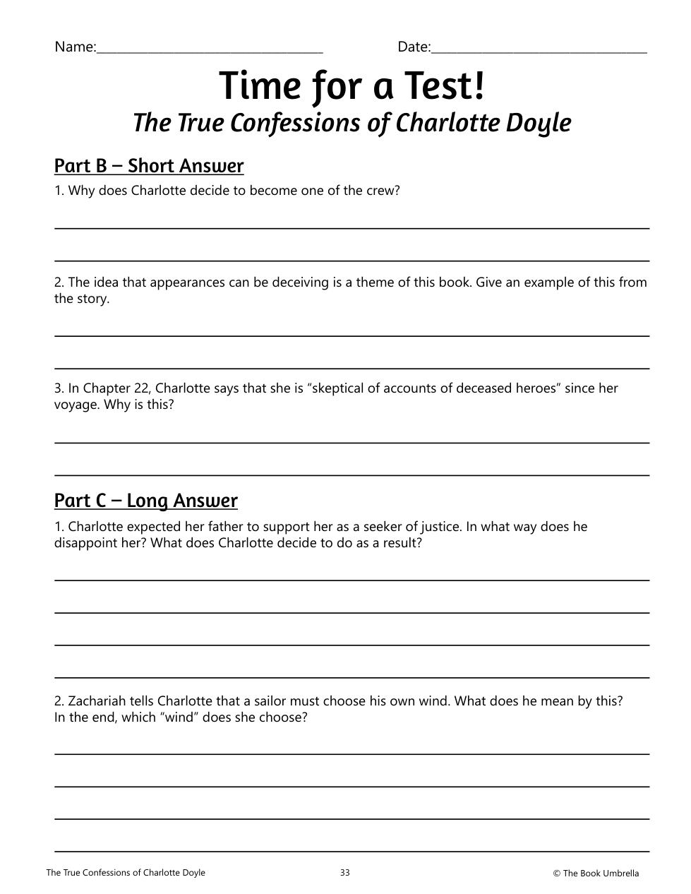 Charlotte expected her father to support her as a seeker of justice. In what way does he disappoint her? What does Charlotte decide to do as a result? Use the R.A.C.E. format to answer the question.