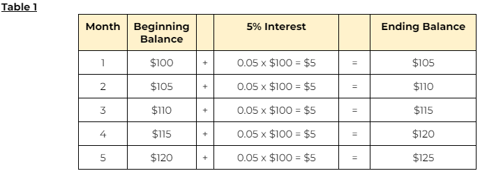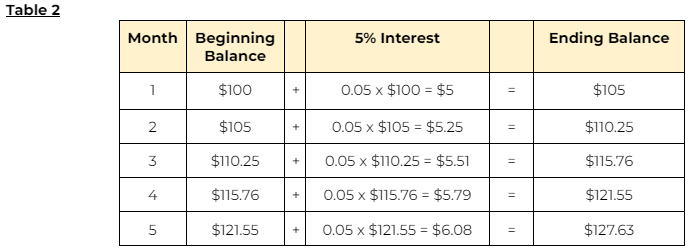 Would you prefer Table 1 or Table 2 if you were earning interest on an investment? Explain your answer.