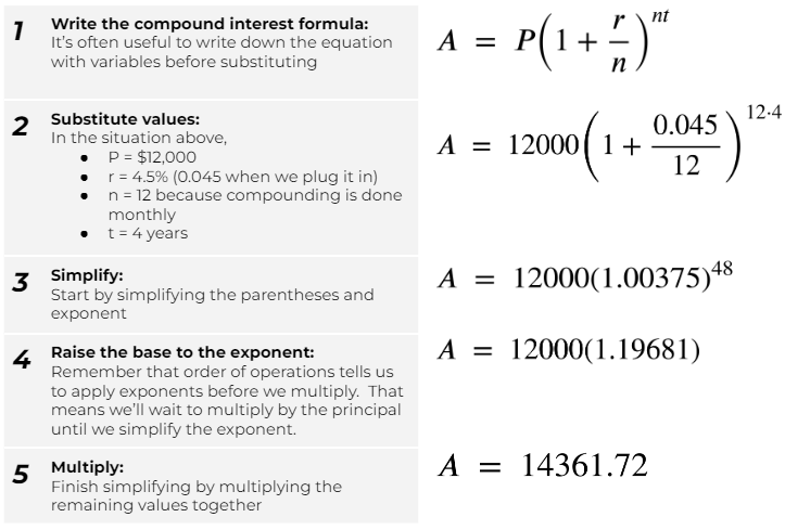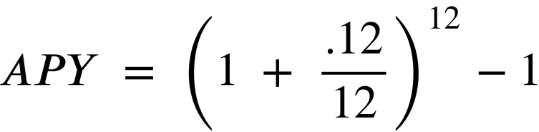 Now let’s calculate the APY of each compounding period to see what percentage rate Alonso is actually paying annually. Recall the formula: