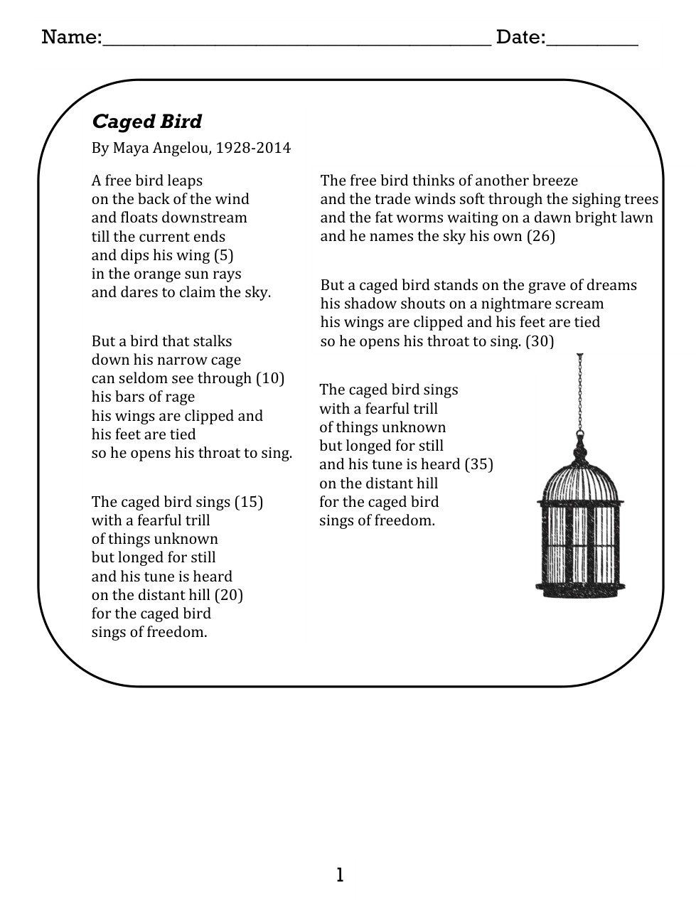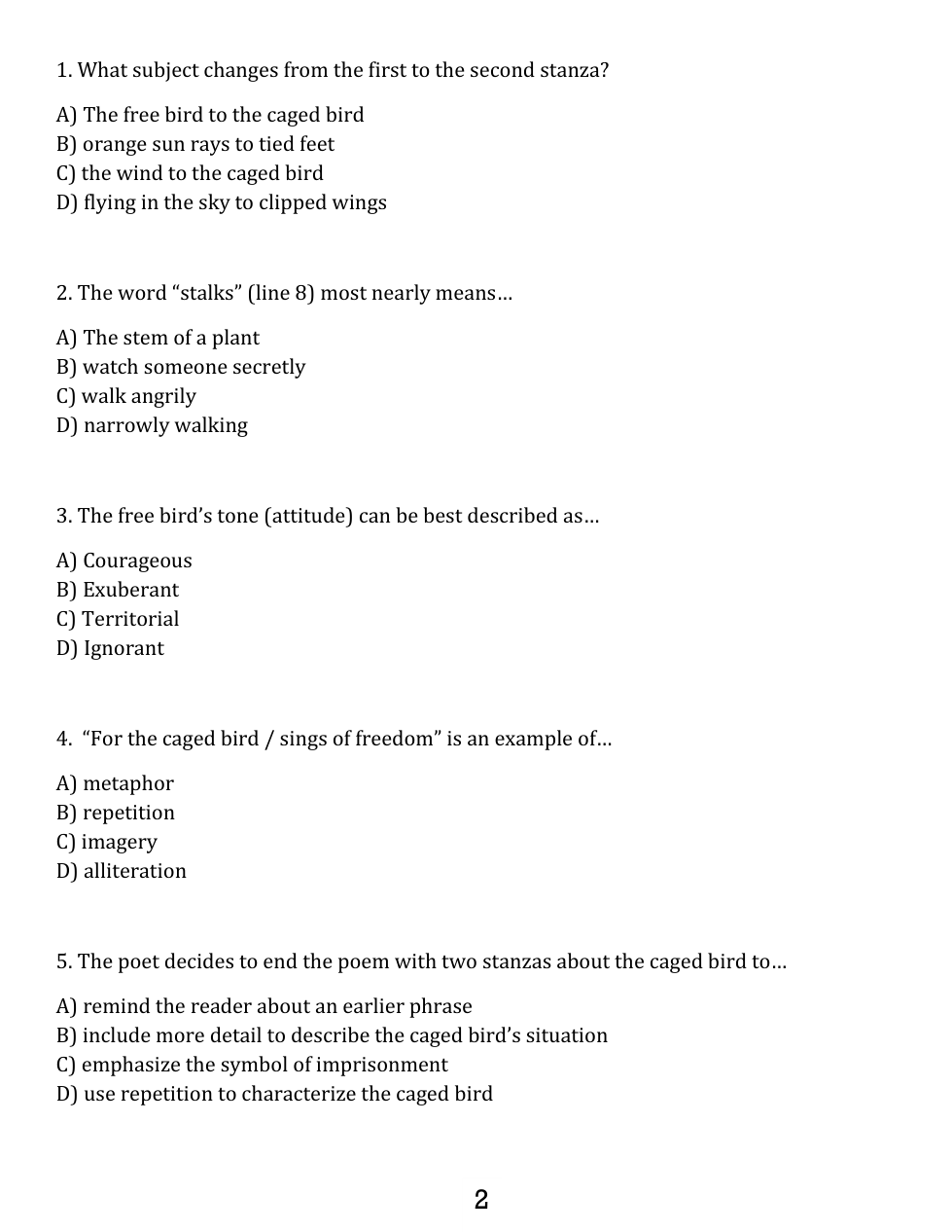 The poet decides to end the poem with two stanzas about the caged bird to...
