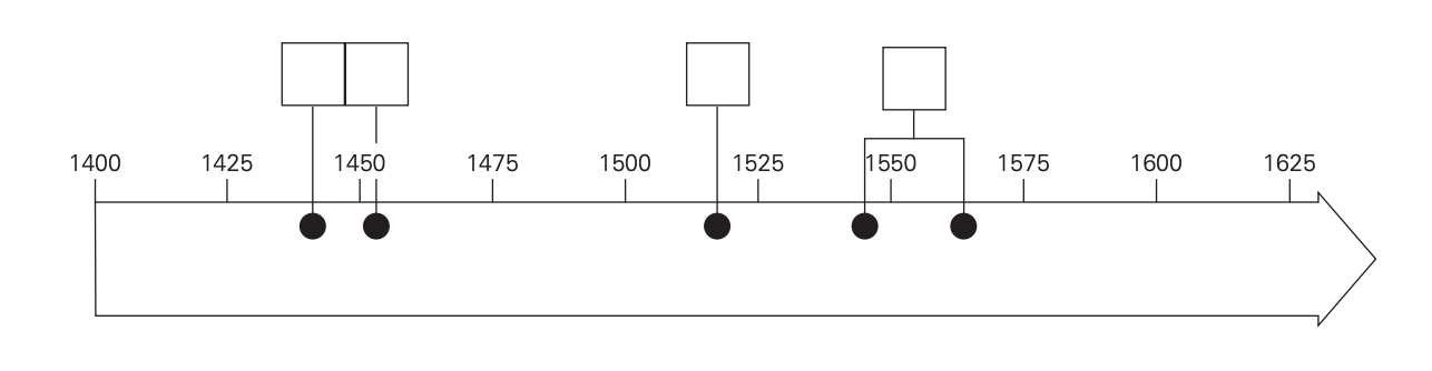 La Renaissance arrive après le Moyen-Âge. Situe les bonnes dates avec les bons événements.