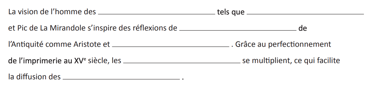 - les idées des humanistes permettent le développement des sciences- les idées des humanistes sont à l'origine d'un renouveau artistique- les idées des humanistes influencent la religion