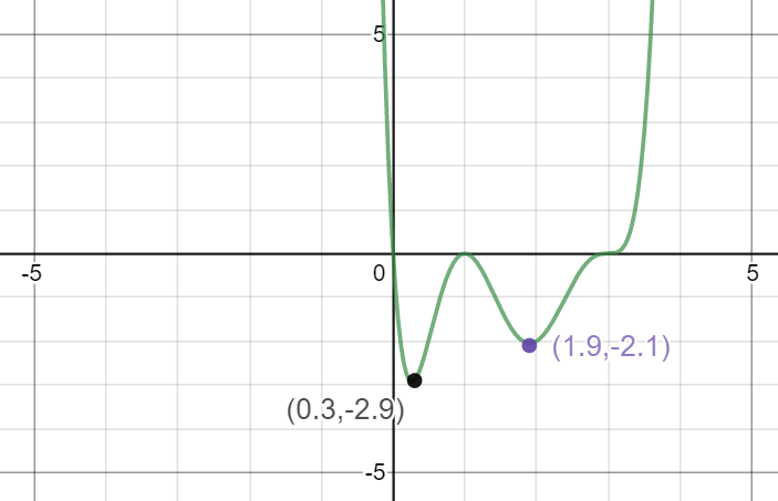 Use your answer from the last question to graph this function, using the following relative max/min: