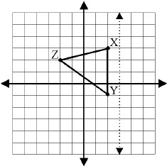 If triangle XYZ is reflected about the vertical line x=3, what are the new coordinates for Z'?
