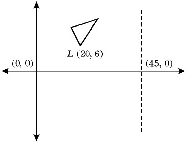A graphic artist designing a company's logo wants to reflect triangle LMN across the dotted line to form triangle L'M'N'. What will be the coordinates of L'?