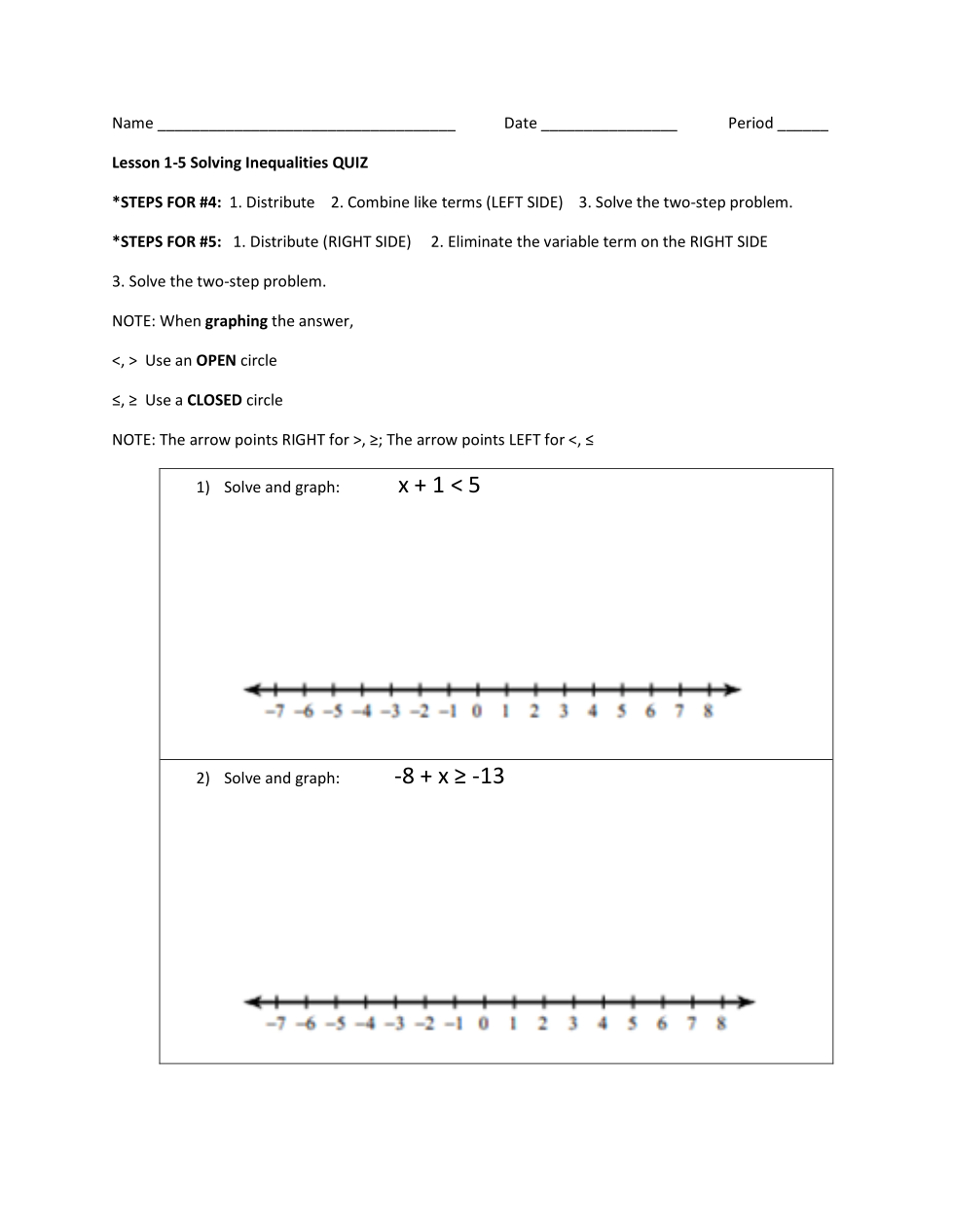 MRY Ch 1.5 QUIZ Solving Linear Inequalities