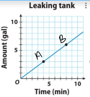The slope of the line gives gives the leaking rate in gallons per minute.