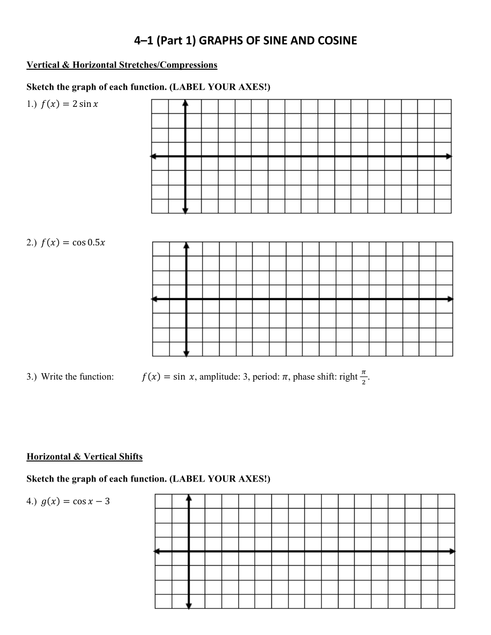 Write a function (g(x)): f(x) = sin x, amp.: 3, per.: pi, phase shift: right pi/2. (Don't forget to write "g(x)=").