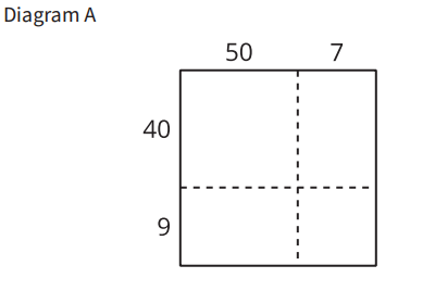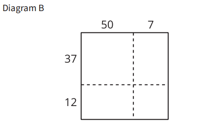 How to represent the multiplication of 2 two-digit numbers using a rectangular diagram