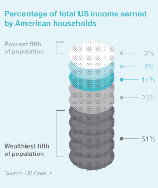 What % of all income in the U.S. goes to the poorest 1/5 of the population?
