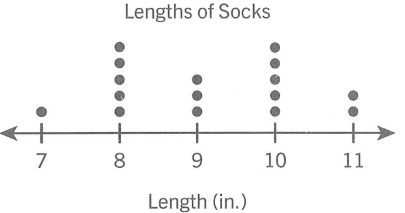 The dot plots shows the length of socks Sam owns.