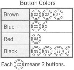 The pictograph shows how many buttons Mary had of each color in her crafting kit.