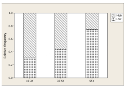 In a study of the relationship between the amount of violence a person watches on TV and the viewer's age, 81 regular TV watchers were randomly selected and classified according to their age group and whether they were a “low-violence” or “high-violence” viewer.