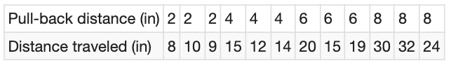 Mrs. Nosal found some pull back cars and wanted to predict how far the cars could travel depending on the distance the car was pulled back from the start line before it was released.