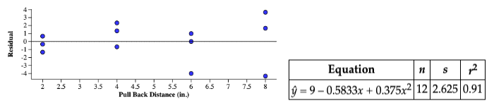 Mrs. Nosal analyzed the data in statsmedic using a linear regression and a quadratic regression. She got the following outputs and residual plots: