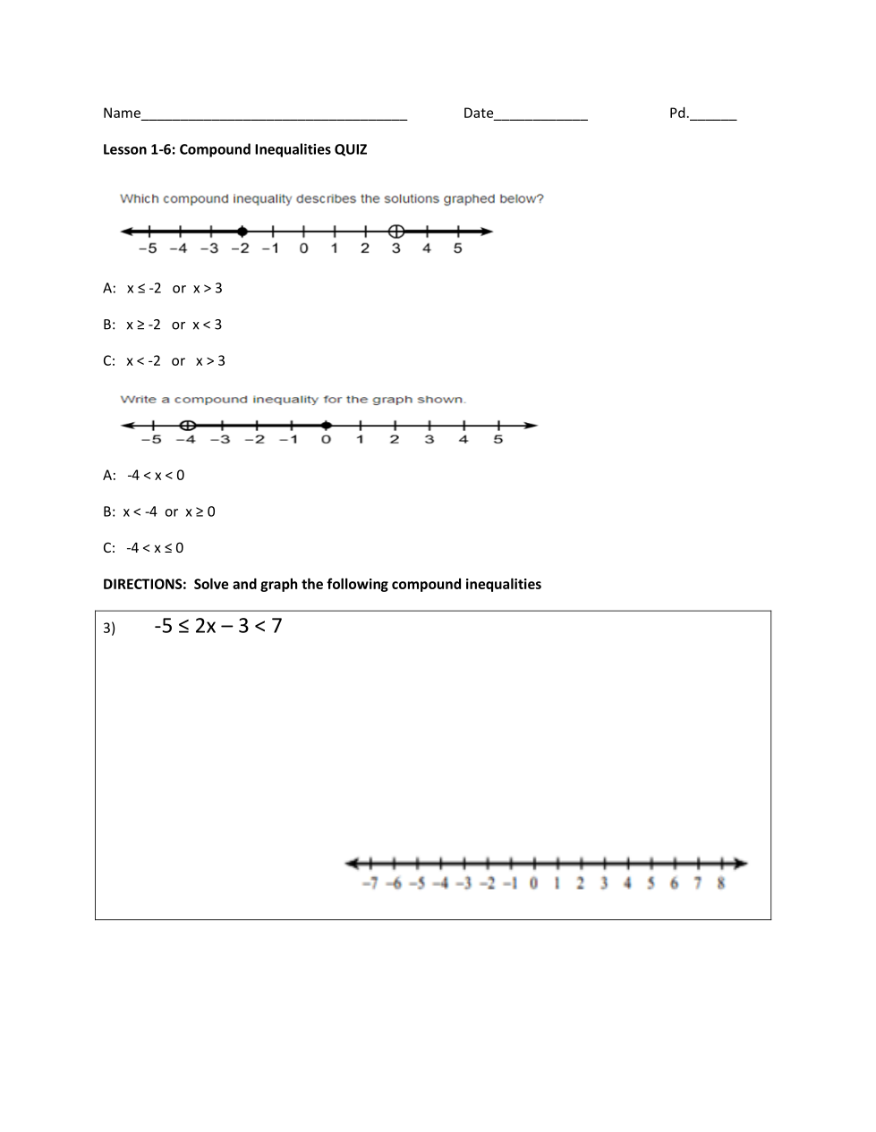 MRY Ch 1.6 QUIZ Compound Inequalities (20 pts)