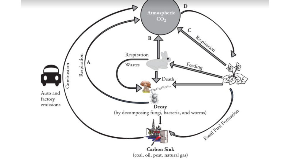 Name two ways that carbon (usually in the form of CO2) enters the atmosphere.