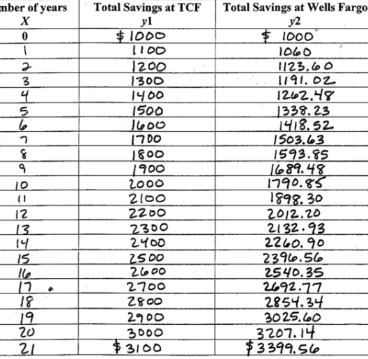 The table and graph below represent the TCF and Well Fargo savings situations.