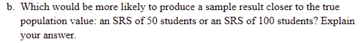 The director of student life at a small college wants to know what percent of students eat regularly in the cafeteria. To find out, the director selects an SRS of 300 students who live in the dorms.