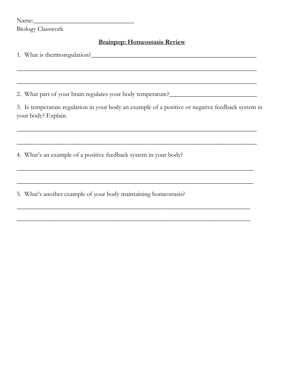 Braymiller Homeostasis Review and Membrane transport