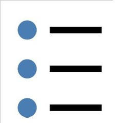 Steps or directions in oder of importance | arrow_right_alt | font size, colour or style |