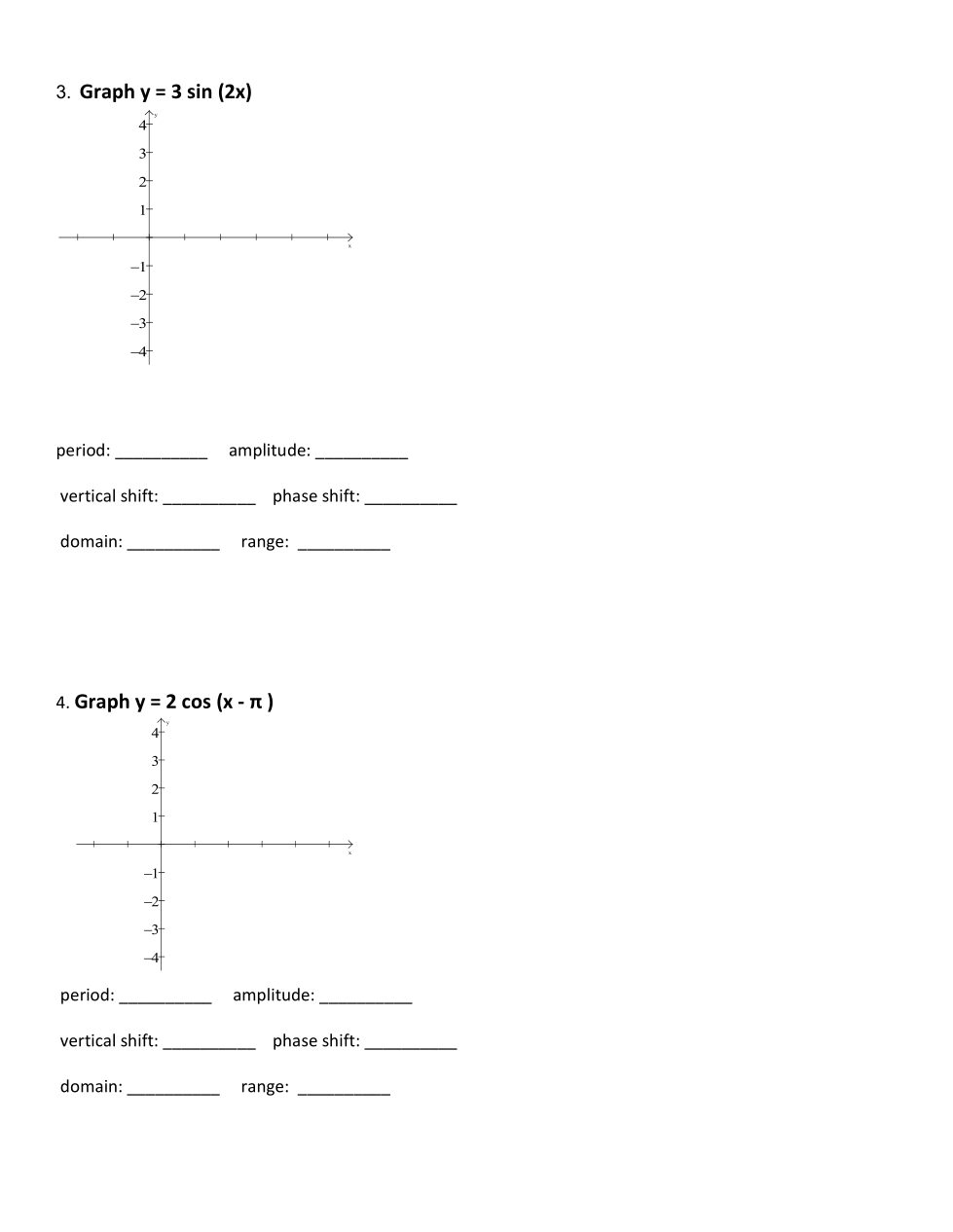 Graph the function. Be sure to type in the appropriate quarter points on the x-axis.