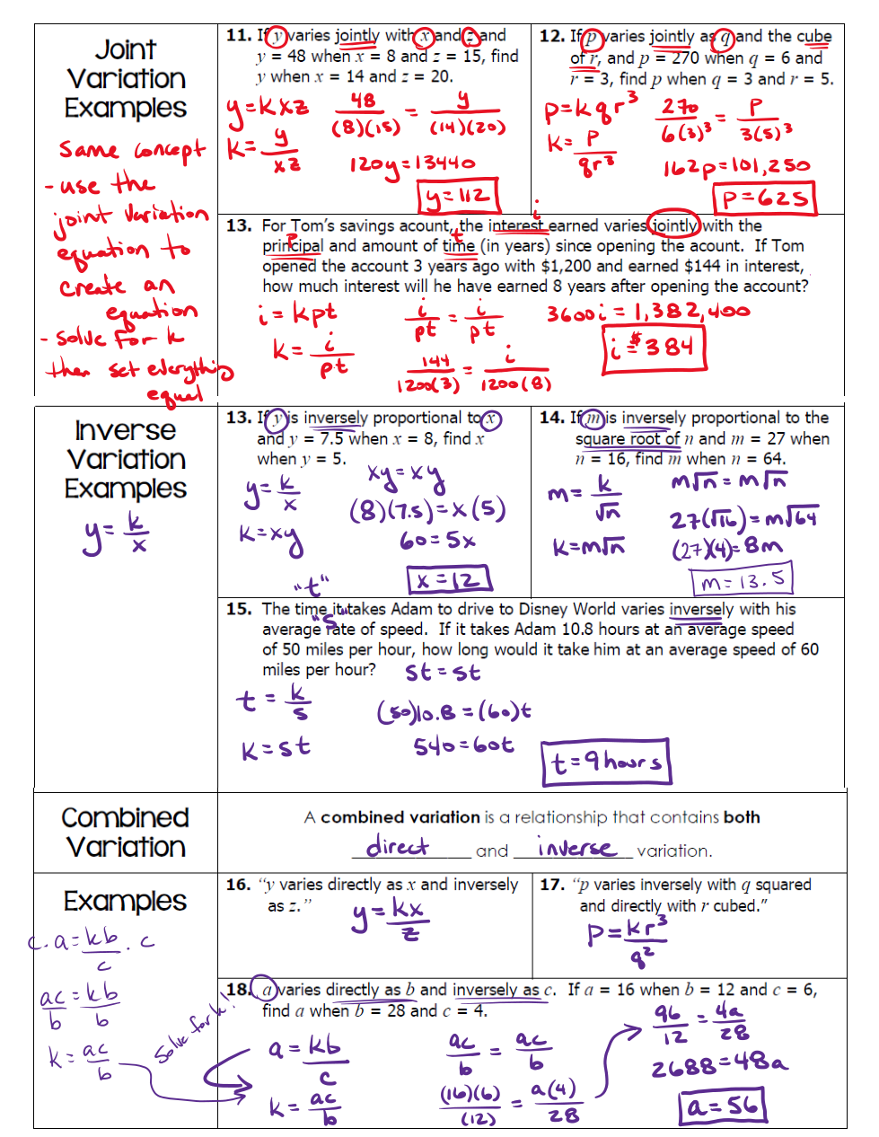 (please note that #14 is INCORRECT on the notes and the video...the answer should be 13.5, not 12)