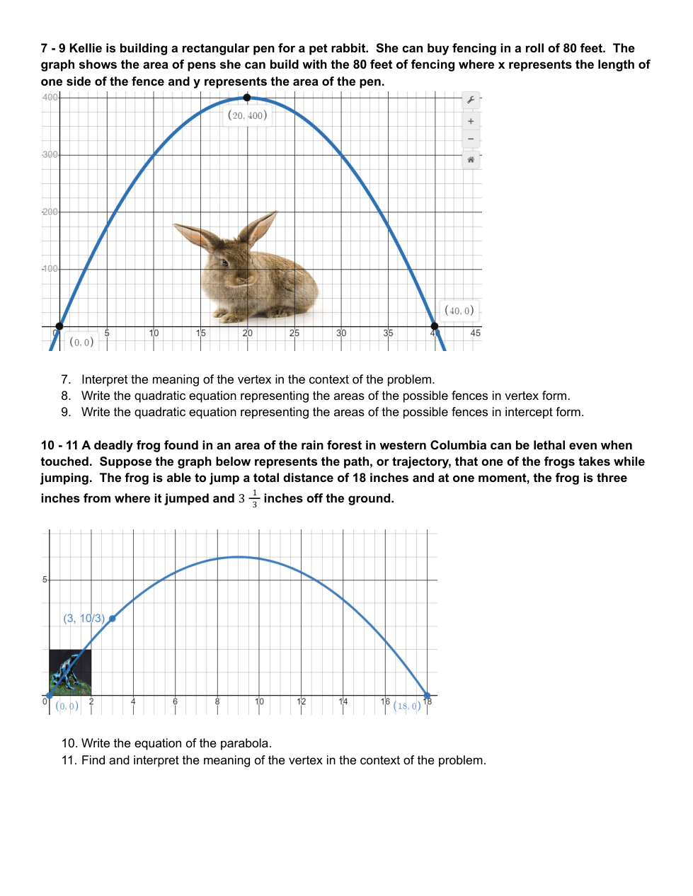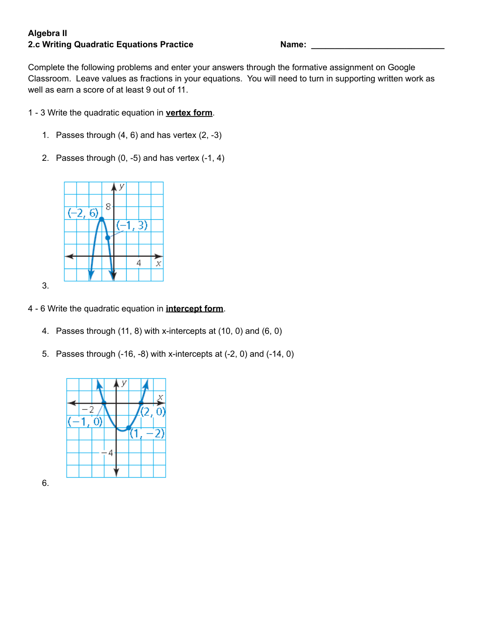 Write the quadratic equation in vertex form. y = a(x - h)2 + k