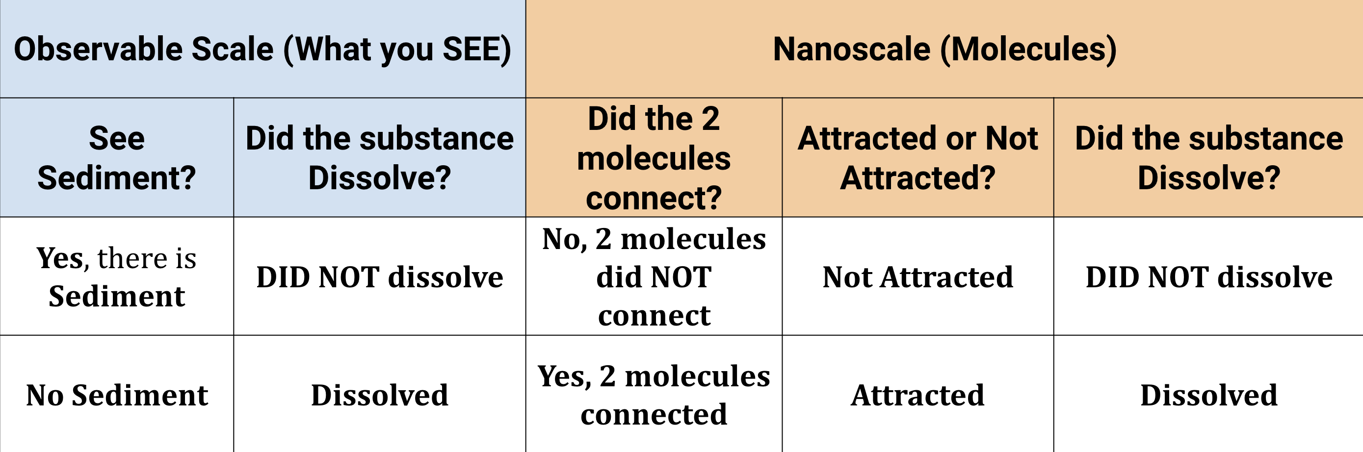 -If you DO NOT SEE sediment, the substance dissolved.