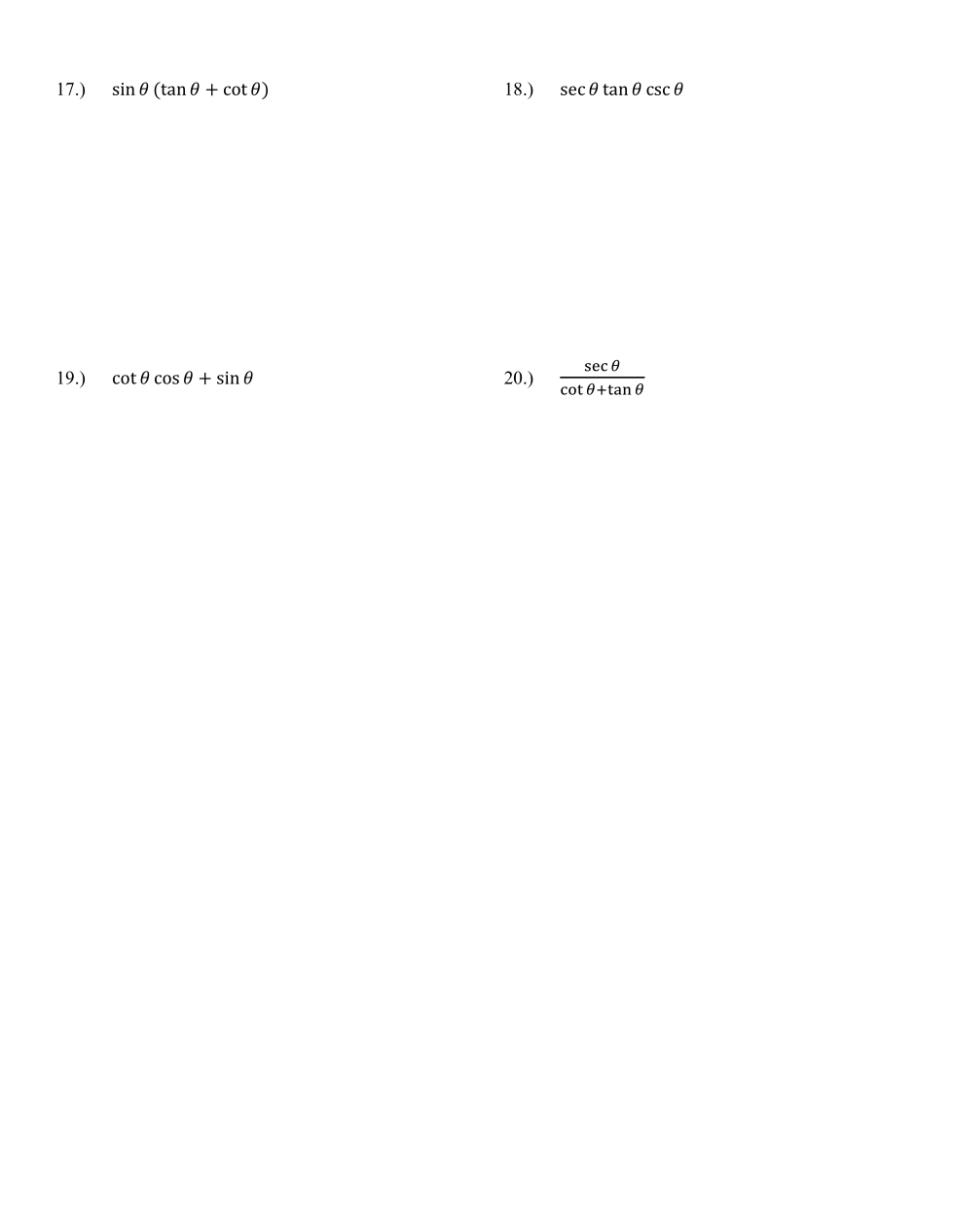 Simplify the expression so that your final answer involves only ONE trigonometric function.