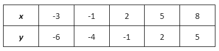 A linear function is graphed and the coordinates are in the grid below.