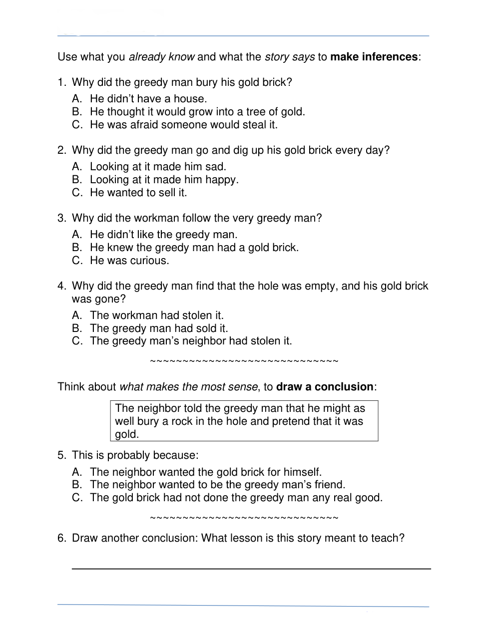 Why did the greedy man find that the hole was empty, and his gold brick was gone?