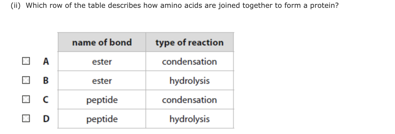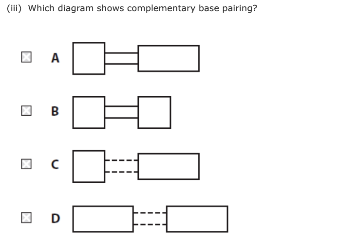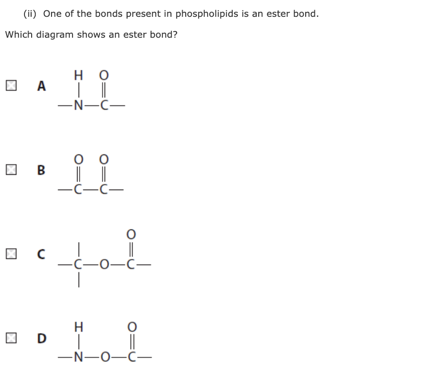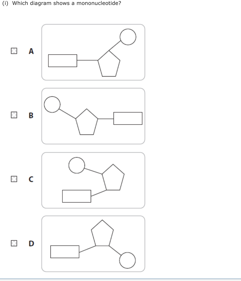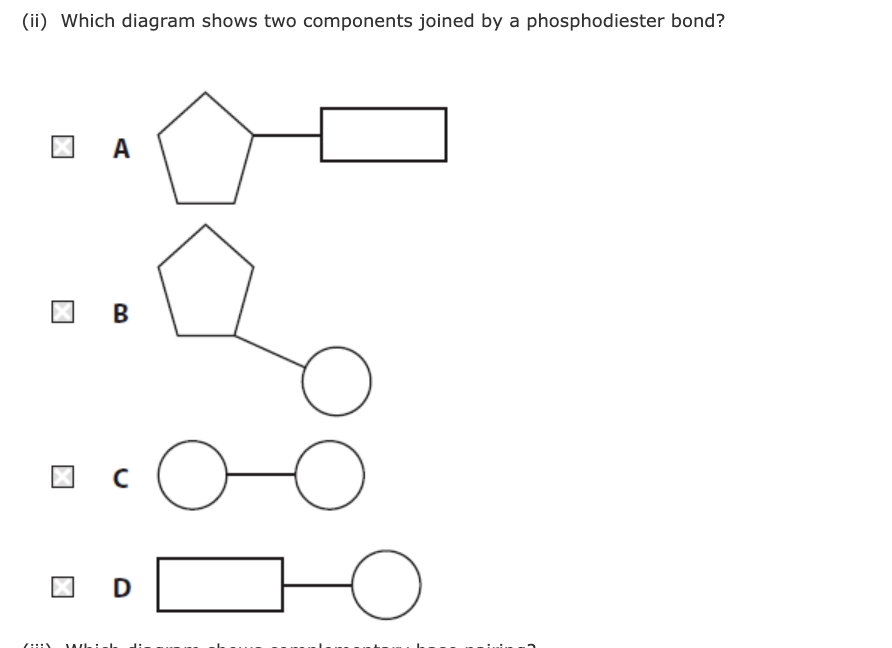 Using the table in Q28, which diagram shows two components joined by a phosphodiester bond?